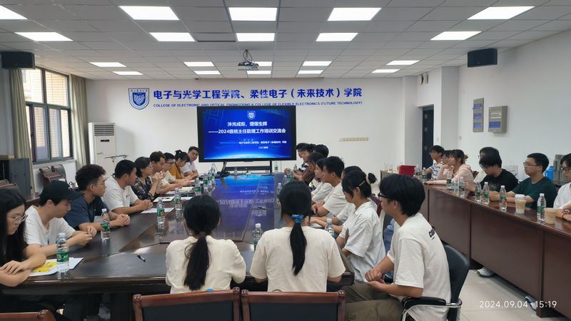 9月4日下午,tyc1286太阳成集团、柔性电子(未来技术)学院在电光学科楼A327顺利举办2024级班主任助理培训会暨聘任仪式。学院党委副书记、副院长徐磊,新生辅导员强增寿、刘振、吴鹏、江重九、李月出席活动,参加大会的还有2024级全体班主任助理。本次会议由刘振主持。