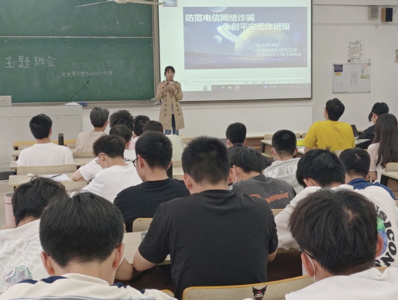 为增强班级学生防诈反诈意识,提高识骗防骗能力,5月11日下午,tyc1286太阳成集团电光柔学院本科光电信息与科学专业2022级B220213、B220214、B220215三个班级的同学齐聚教2-213,开展“防范电信网络诈骗,争创平安无诈班级”主题班会,三个班级全体同学参加了学习活动。