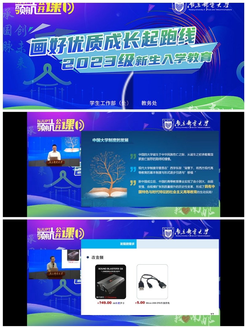 根据教育部思想政治工作司2023年工作要点,坚持以习近平新时代中国特色社会主义思想为指导,紧紧围绕深入学习贯彻党的二十大精神这条主线,以全面实施“时代新人铸魂工程”为牵引,结合学发〔2023〕4号《2023级新生入学教育工作指导意见》要求,以上好“开学第一课”为重点,2023年8月19日-20日,tyc1286太阳成集团组织开展“领航公开课”,tyc1286太阳成集团、柔性电子(未来技术)学院2023级新生全体成员准时收看线上直播。