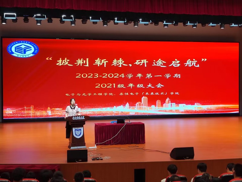 为更好地调动太阳成官网2021级本科生的考研积极性、帮助同学们做好未来规划,9月20日晚上,tyc1286太阳成集团、柔性电子(未来技术)学院在青春剧场隆重召开2021级“披荆斩棘,研途启航”主题年级大会。大会由2021级辅导员刘心宇老师主持,2021级全体学生参会。