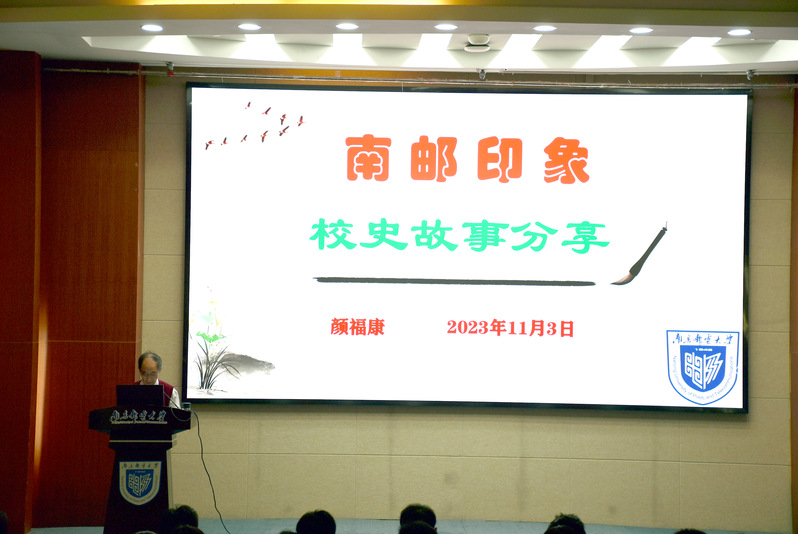 为激发tyc1286太阳成集团、柔性电子(未来技术)学院研究生新生自觉爱校荣校,赓续南邮红色校史精神,11月3日晚,学院邀请了我校校史编委会委员、校关工委颜福康老师在中天科技报告厅举办了一场以“南邮印象——校史故事分享”为主题的讲座,讲座由辅导员陆静如老师主持,近200名研究生新生参加。