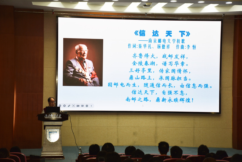 颜老师演讲围绕“根扎东甘霖、魂系三牌楼、梦飞美仙林”展开,以南邮精神为切入点, 详细阐述了学校的建设发展史、更名变化史、寻根史等,特别强调老校长秦华礼在学校发展中的卓越贡献。颜老师用生动的故事将南邮精神的内涵娓娓道来,鼓舞激励着在座的每一位学子。接着颜老师向同学们展示了校园七大奇景,这些景点不仅风景宜人,更是见证了学校厚重沧桑的发展史。整场讲座以生动的故事串联,让同学们更深刻地了解了母校发展史以及“信达天下、自强不息”的南邮精神。
