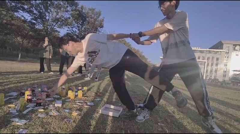 接下来的游戏是“运送气球”,同学们按照分好的小组两两合作,用后背接触气球进行运送,在保证气球不掉的情况下力求尽快到达终点。这项游戏紧张刺激,需要大家集中注意力、默契配合,进一步拉近了成员彼此之间的距离。